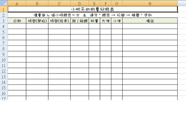 若有需要表格的新手媽媽 一樣留言囉